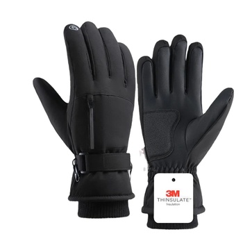 Men's Windproof Ski Gloves Warm Polyester Snowboard Gloves for Winter for Bicycle & Motorcycle Riding Black Color